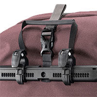 The QL3.1 system is especially developed for office and city bags an its secret lies in the fact that the main mounting components stay on the rack. This results in a smooth rear side of the bag that is free of protruding hooks, and significantly improves the bag’s carrying comfort when off the bike. The QL3.1 system has all the known advantages of the previous ORTLIEB QL systems.